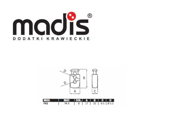 Stoper do sznurka FV2 dwudziurkowy czarny