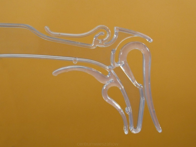 Wieszak galanteryjno-bieliźniany z zaczepami dolnymi oraz górnymi (wcięcia na ramionach).