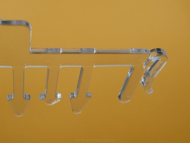 Grzebieniowy wieszak bieliźniany z wieloma zaczepami dolnymi.