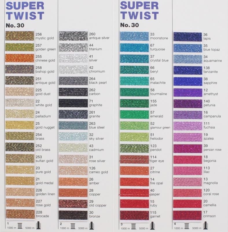 Nici SUPER TWIST No.30 - grubsza niż standardowa nitka metalizowana, efekt brokatu zalecana igła: 90#14
