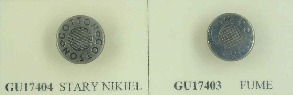 Guzik nierdzewny o średnicy 17 mm, na plastikowej stopce. Wzór COTTON