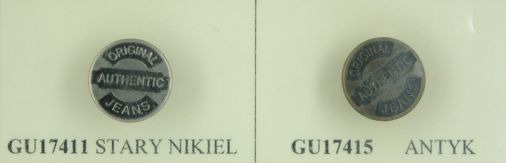 Guzik nierdzewny o średnicy 17 mm, na plastikowej stopce. Wzór AUTHENTIC
