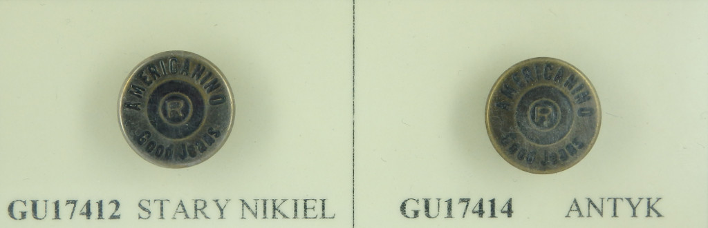 Guzik nierdzewny o średnicy 17 mm, na plastikowej stopce. Wzór AMERICANINO.