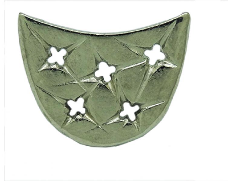 Ozdoba-blaszka z wycięciami o kształcie krzyżyków, mocowana na tzw. wąsy