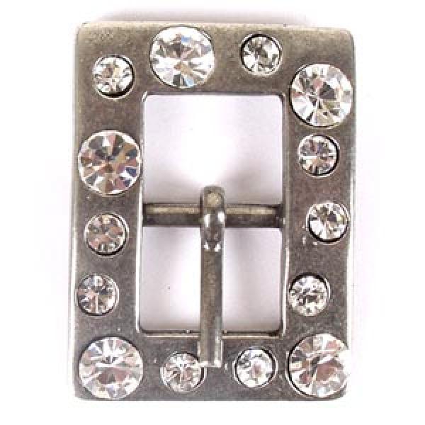 Klamerka w kształcie prostokąta, dwustronna. Powierzchnia ozdobiona 14 cyrkoniami.