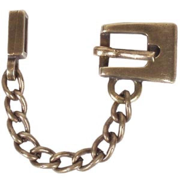 Klamerka w kształcie prostokąta z przyczepioną na łańcuszku szlufką. Jednostronna.