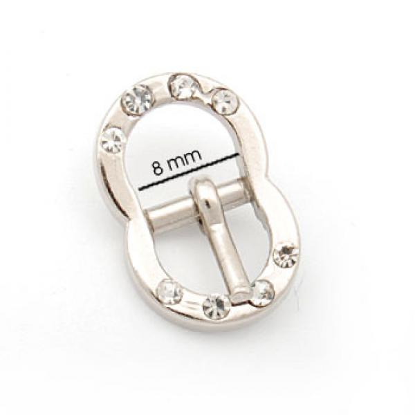 Klamerka o nieregularnym kształcie. Dwustronna. Ozdobiona 8 cyrkoniami.