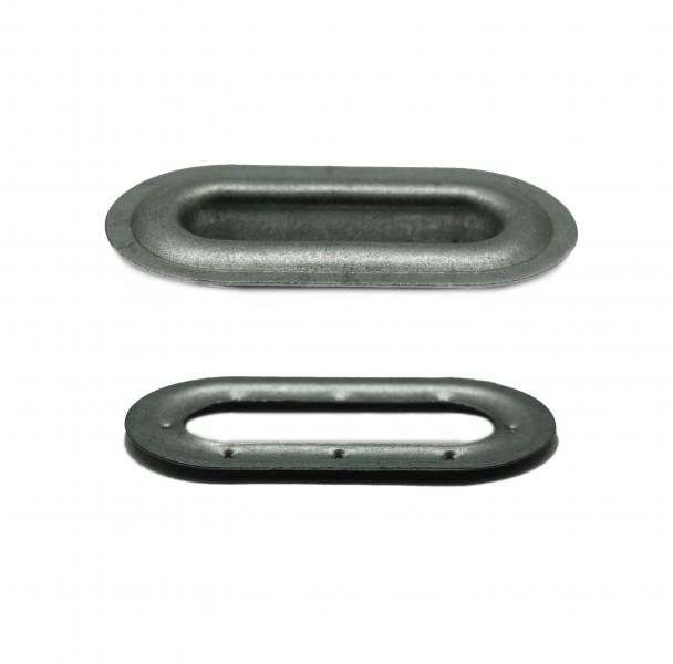 Oczko owalne wykonane z blachy stalowej z podkładką.