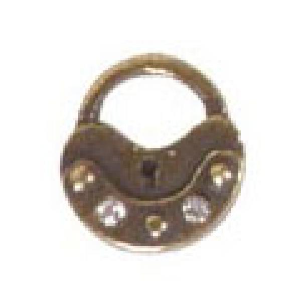Nieduża ozdoba kaletnicza o kształcie kłódki, zdobiona symilkiem.