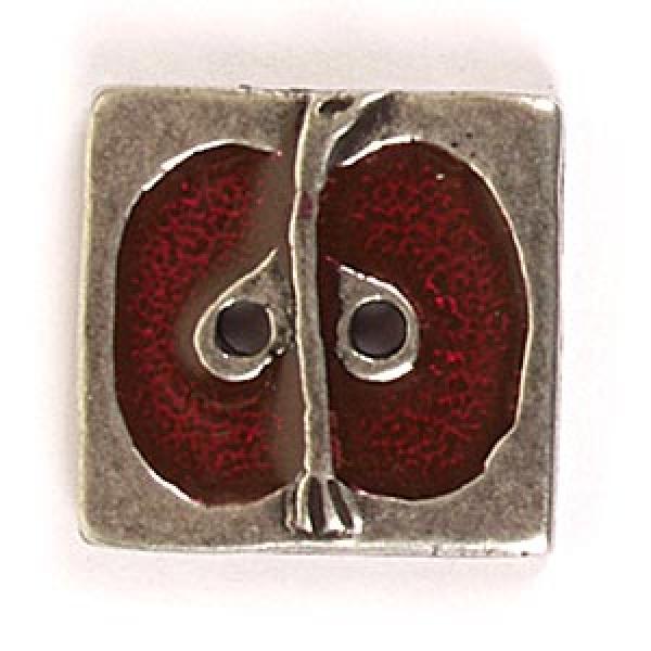 Ozdoba z ornamentem w kształcie jabłka, ozdabiana lakiem. Z dwiema dziurkami do przyszycia.