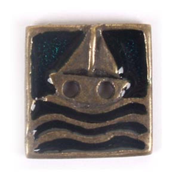 Ozdoba z ornamentem o kształcie żaglówki na falach, ozdabiana lakiem.