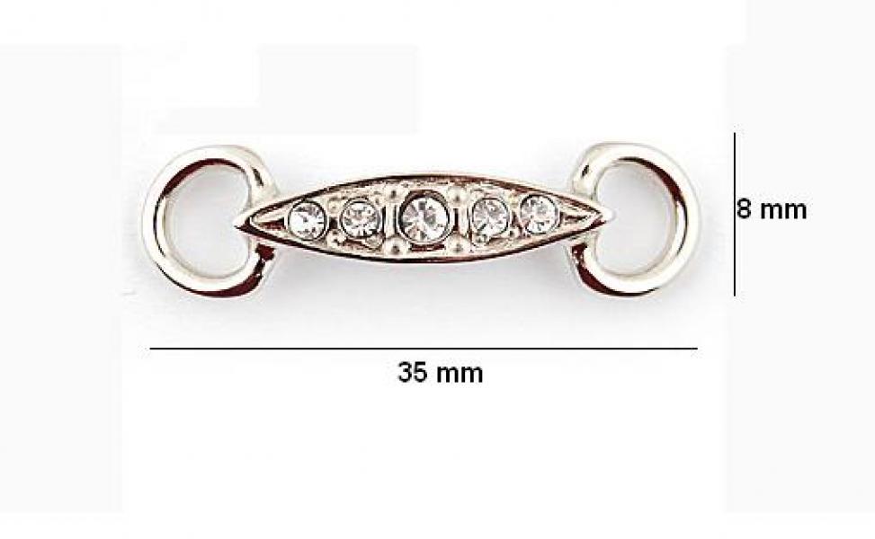 Ozdoba wykonana ze stopu ZnAl, zdobiona symilkami. Z dwoma uszkami do przyszycia.