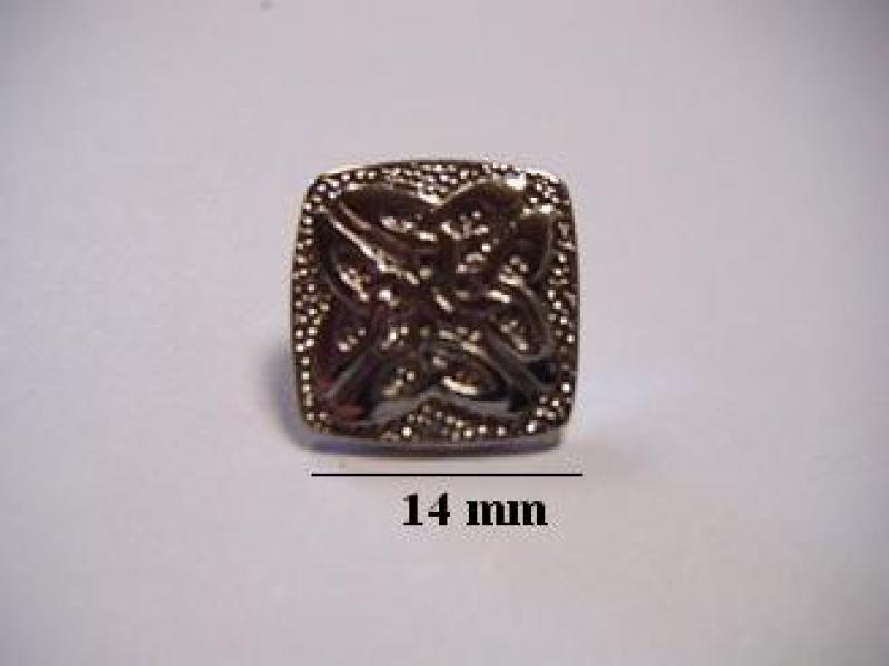 Wymiary: wymiar zewnetrzny w mm 15.00 Montaż: Na nita stalowego NF2 Kształt: Kwadrat Grawer: Z ornamentem
