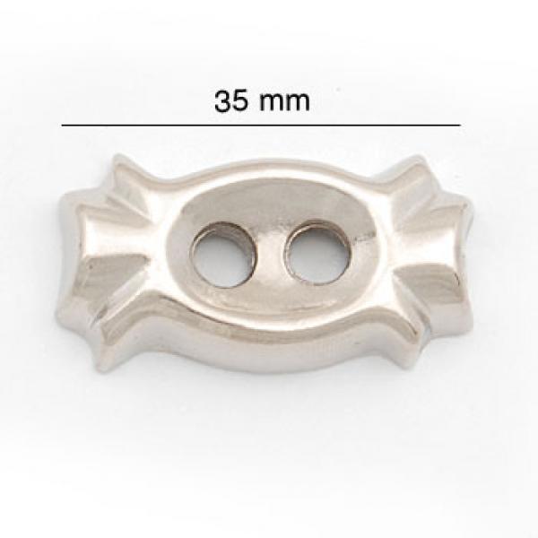 Ozdoba przypominająca cukierek. W środku znajdują się dwie dziurki.