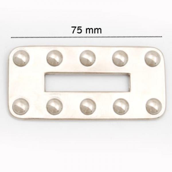 Ozdoba w kształcie prostokątnej blaszki z dziesięcioma puklami na powierzchni.