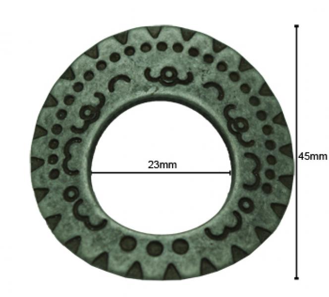 Wymiary: wymiar wewnętrzny w mm 23.00 wymiar zewnetrzny w mm 45.00 Montaż: Na nita stalowego NF2 Kształt: Okrągły Grawer: Z ornamentem
