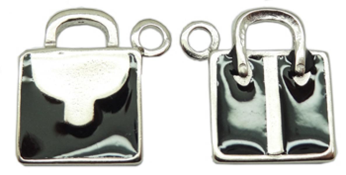 Ozdoba w kształcie aktówki bądź damskiej torebki. Pokryta lakiem dwustronnie.