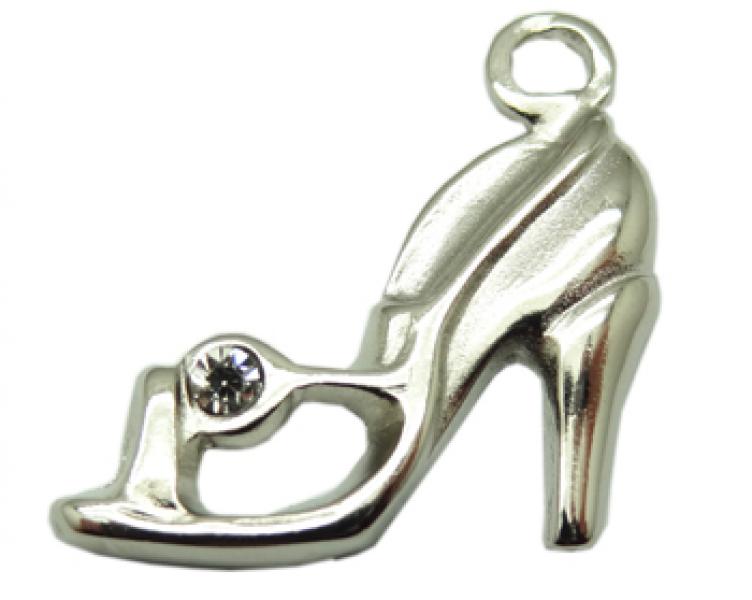 Ozdoba w kształcie damskiego pantofelka przyozdobiona cyrkonią.
