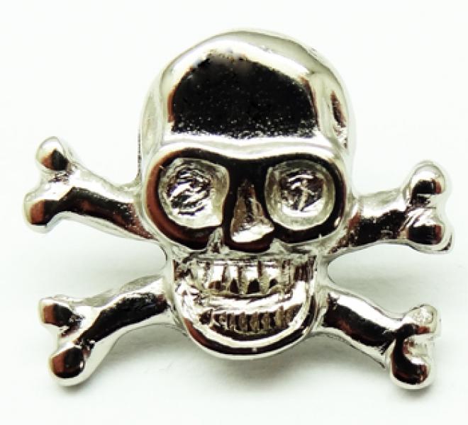 Ozdoba w kształcie czaszki ze skrzyżowanymi kośćmi. Montowana na nita.