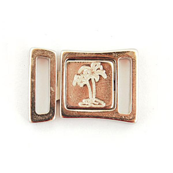 Zapięcie w kształcie prostokąta z motywem palmy.